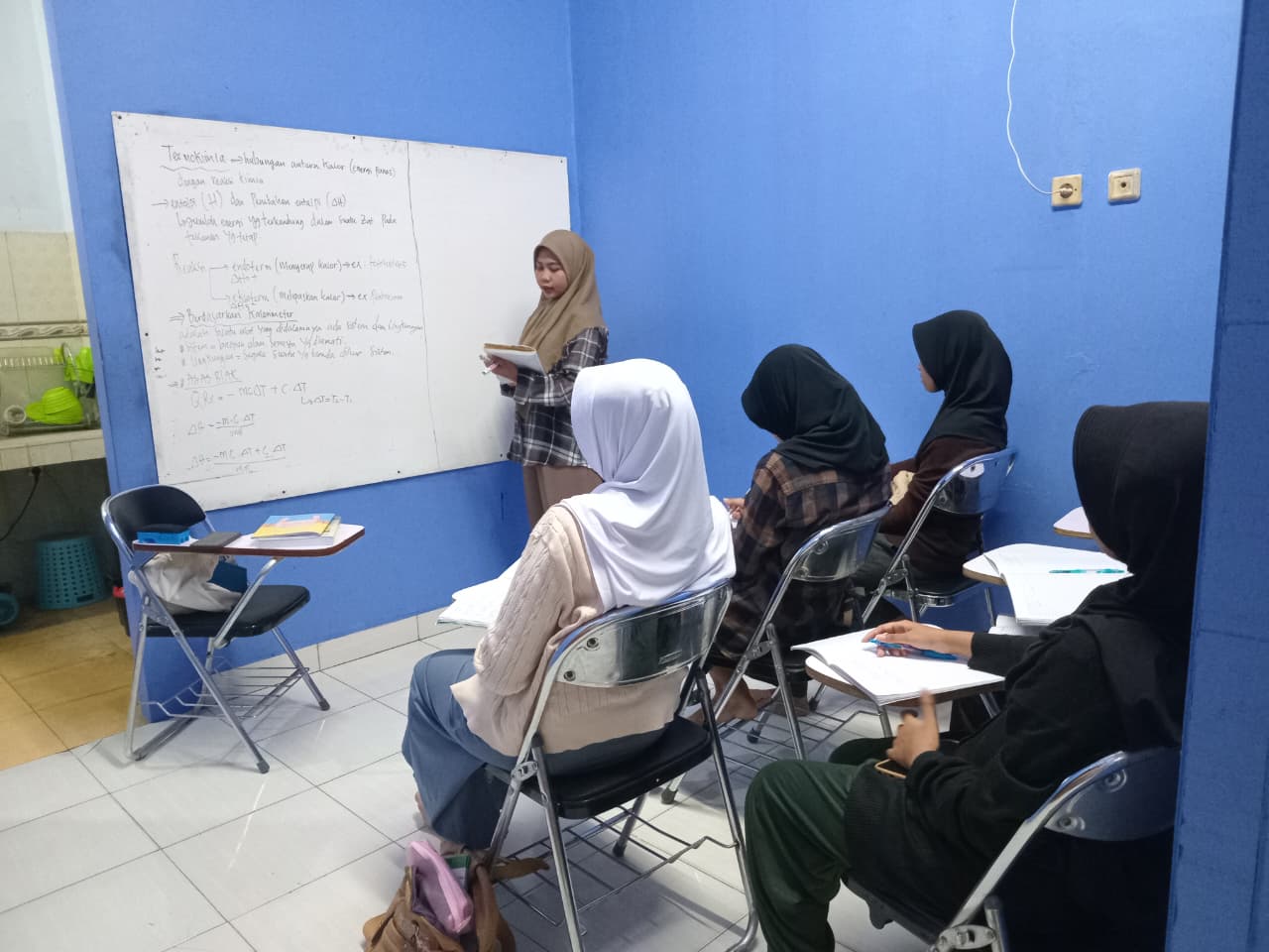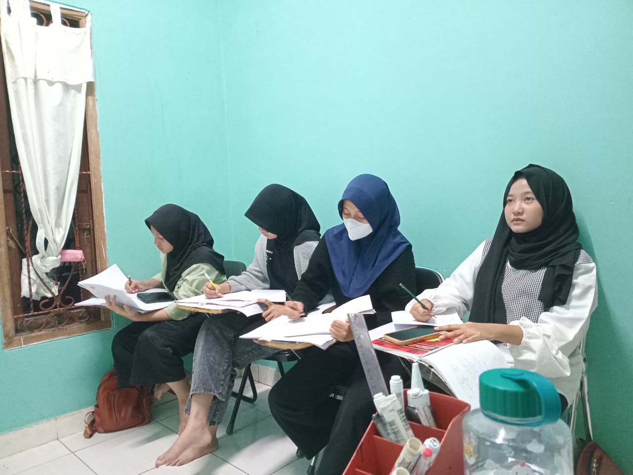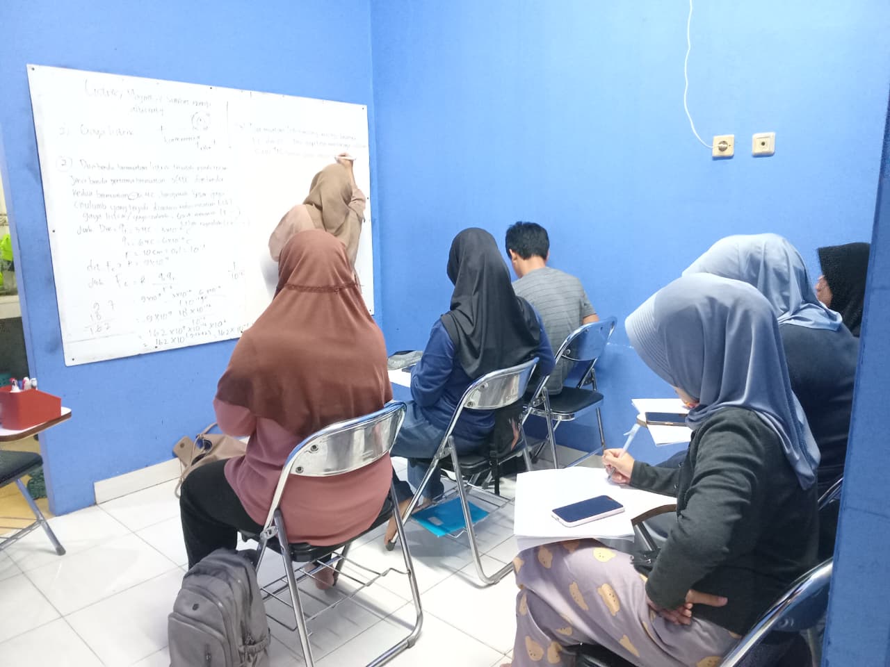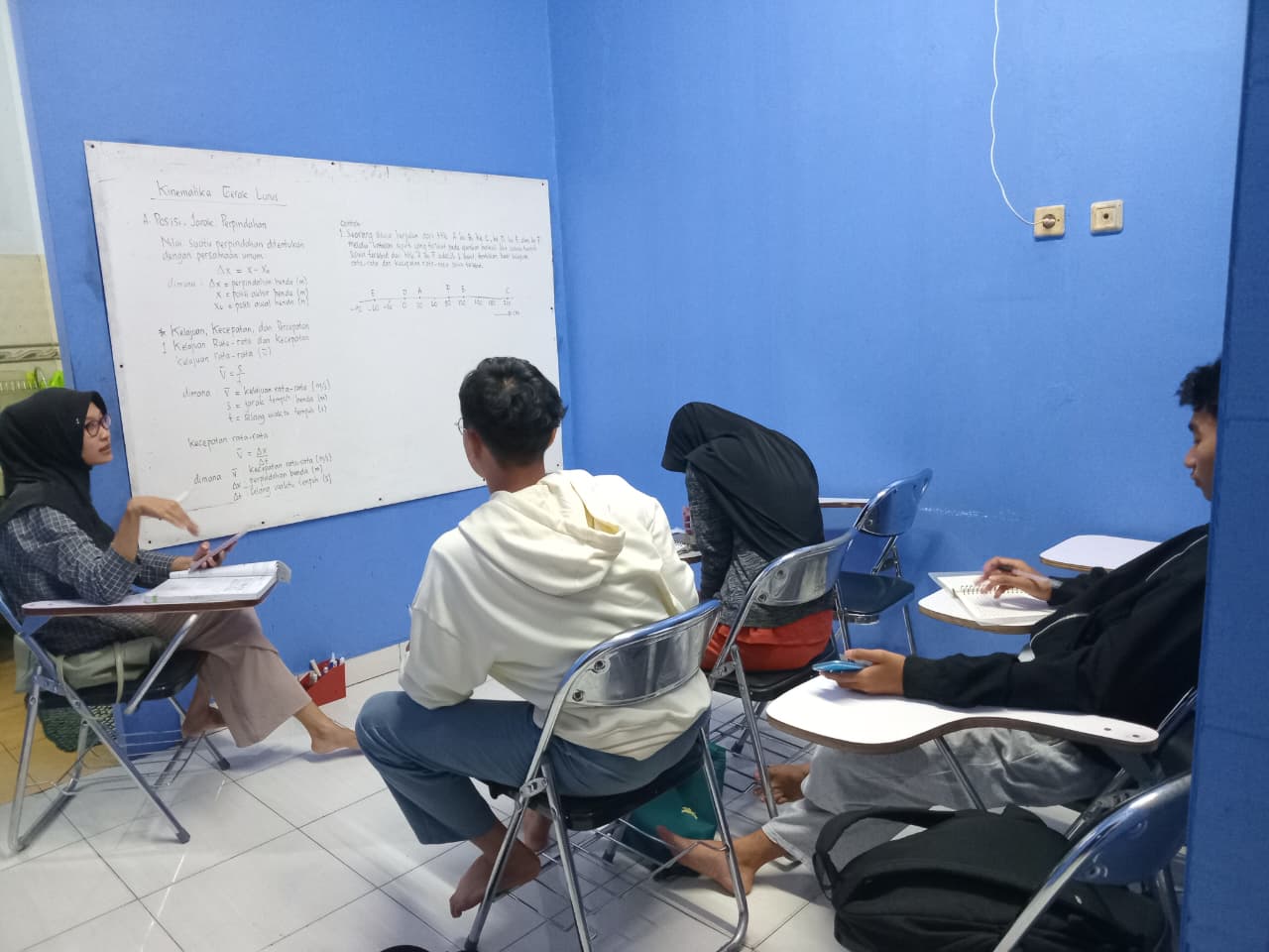 Bimbel: belajar di lokasi bimbel, 1 kelas maksimal 15 siswa.